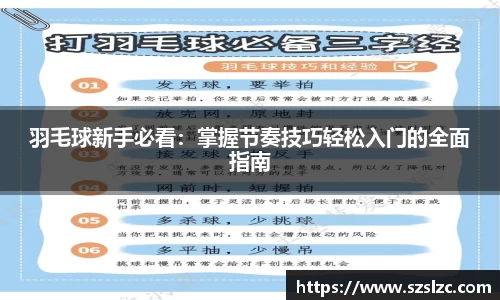 羽毛球是一项既富有竞技性又具娱乐性的运动,受到了越来越多人的喜爱。对于新手来说,掌握节奏技巧是轻松入门的关键。本指南将从四个方面详细讲解如何在羽毛球运动中掌握节奏,包括基础动作的节奏、击球时机的把握、场上移动的节奏以及心理节奏的调整。通过对这些内容的深入了解和实践,新手们能够更快地融入羽毛球运动,提高自己的技术水平,并享受这项运动带来的乐趣。